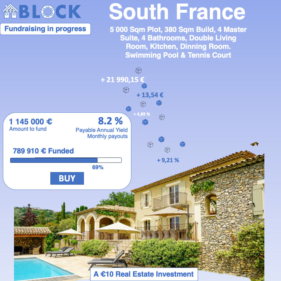 WARNING: Our offers involve certain risks and in particular the risk of total or partial loss of the sums invested. Moreover, past performance is not indicative of future performance, which means that just because our default rate is 0% does not mean that we will never have an incident on a property. If you have any questions about the risks associated with our projects or activity, contact us and our teams will take the time to answer your questions. Maximum effort has been made to make this website content authentic and to articulate all information with accuracy and relevance. Getblocks.co does not contain any financial or real estate investment advice or recommendations. Prospective BLOCK holders should obtain independent legal, financial, tax, accounting, or other advice to determine the potential benefits and implications involving BLOCK’s business. In no jurisdiction the BLOCK intended to represent securities. BLOCK is not a security but provides royalty rights. You should seek advice from a duly authorized independent financial adviser and ensure that you have the necessary risk appetite, experience, and knowledge before entering into transactions. BLOCK shall in no event be liable to any person or entity for direct, indirect, special, consequential, or incidental damages. Content on the BLOCK Platform does not contain advice or recommendations by or on behalf of getblocks.co